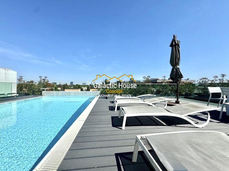 Imobilul in care este situat apartamentul dispune de paza si receptie, piscina pe terasa de pe acoperisul imobilului , vedere splendida catre parc.