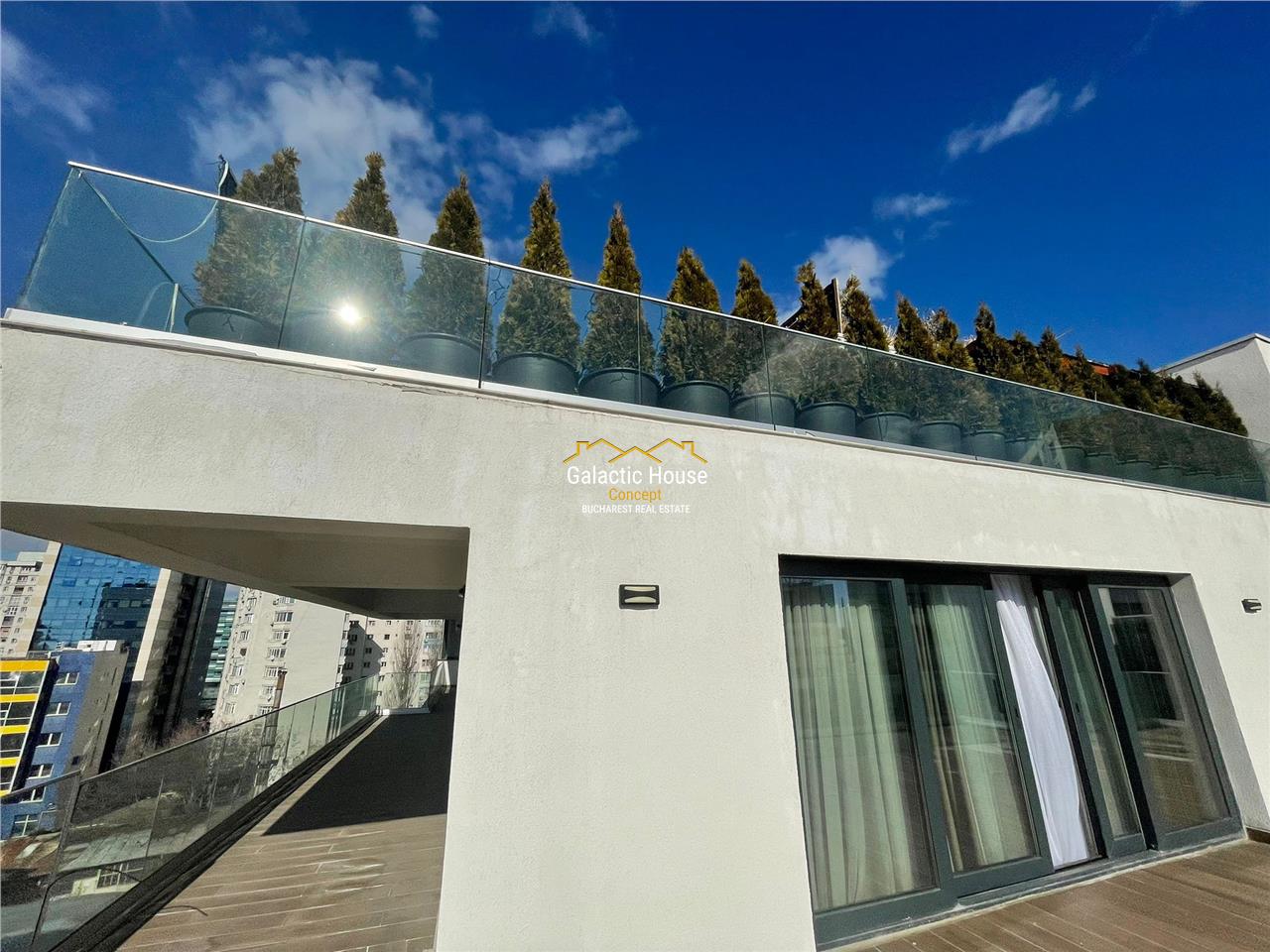 Apartamentul este singur pe etaj, are o suprafata de 180 mp si o terasa de 147.